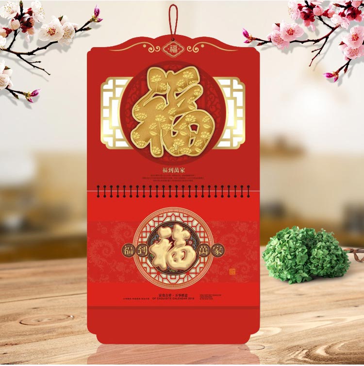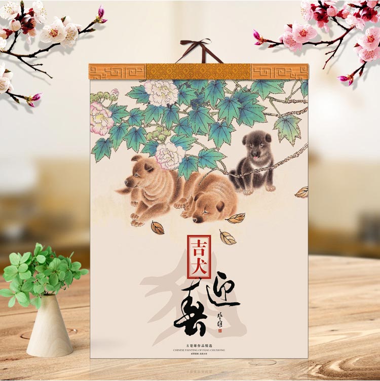 2018狗年福字吊歷掛歷定做印金
